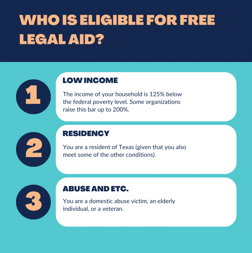 Additionally, apart from general qualifying rules, free legal aid services have other strict requirements for those who want to get their help. For instance, your chances to qualify for legal aid for divorce in Texas may decrease if you have children and are fighting over custody, depending on the organization that offers you help.